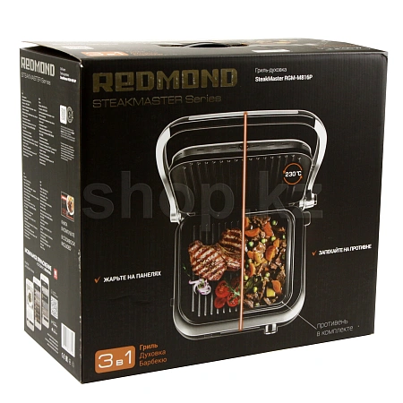 Гриль-духовка REDMOND RGM-M816P – современный многофункциональный прибор с возможностями мощного прижимного электрогриля, компактного духового шкафа и барбекю-жаровни.