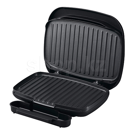 Мощность гриля 1000 Вт и максимальная температура рабочих поверхностей, составляющая 200°C, обеспечивают прожарку мяса за 7-10 минут. Прорезиненные передние ножки обеспечивают устойчивое положение на рабочем столе. Для сбора мясного сока предусмотрен поддон.