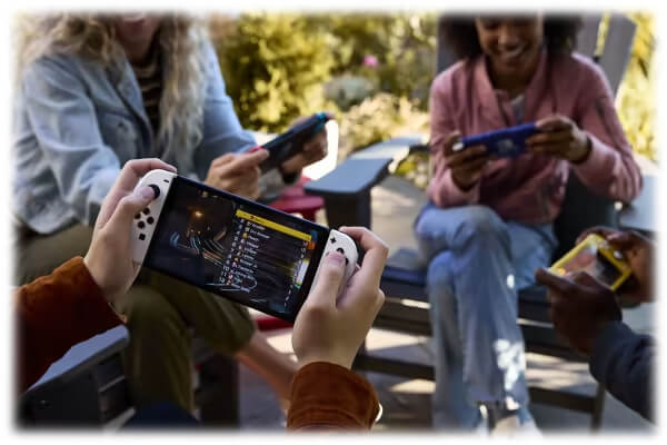Портативный (ручной) режим Возьмите систему в руки и играйте с подключенными контроллерами Joy-Con™, наслаждаясь 7-дюймовым OLED-экраном.