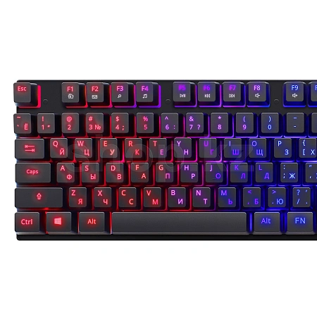 Современный проводной игровой набор. У клавиатуры классическая полноразмерная раскладка с увеличенными клавишами-модификаторами и возможностью управления мультимедийными программами. Мышка имеет эргономичную форму, радужную подсветку и 4 режима разрешения. Коврик с прорезиненным основанием и оптимальным размером 28 х 23 см.