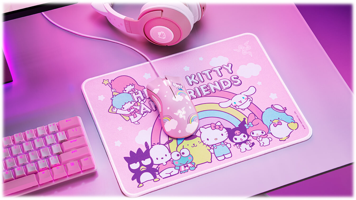 Игровой набор, состоящий из эргономичной игровой мыши 6400 DPI и мягкого тканевого коврика Razer в эксклюзивном дизайне Hello Kitty and Friends Edition.