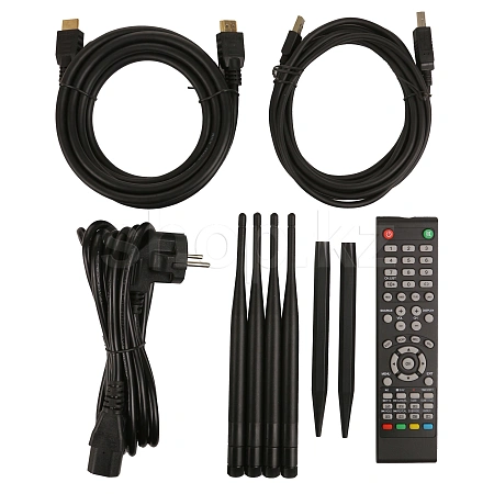 Антенналар, HDMI кабелі, USB кабелі, Қуат кабелі, Маркерлер, Қабырға бекіткіші, ҚБ пульті
