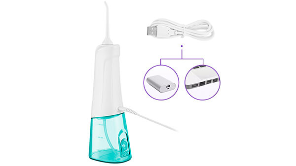 Заряжать ирригатор с помощью USB-шнура можно от компьютера, через блок питания или через внешний аккумулятор, если вы в дороге. Время полной зарядки составляет около 4 часов.