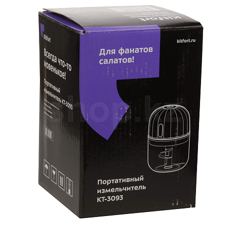 Беспроводной измельчитель Kitfort КТ-3093 подойдёт для измельчения мяса, твёрдого сыра, овощей, трав, чеснока, ягод и других продуктов. Работает от нажатия на кнопку сверху прибора. Степень измельчения регулируется длительностью нажатия на кнопку.