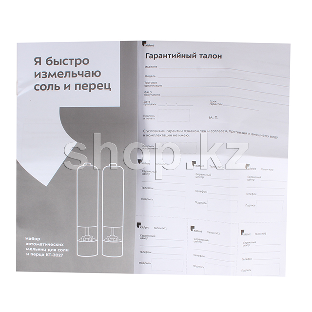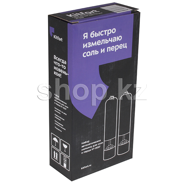 Набор мельниц Kitfort KT-2027 измельчает перец-горошек, соль и другие специи. Нет нужды молоть специи впрок. Мельница одновременно мелет и дозирует. Поместите её над блюдом и просто нажмите кнопку.