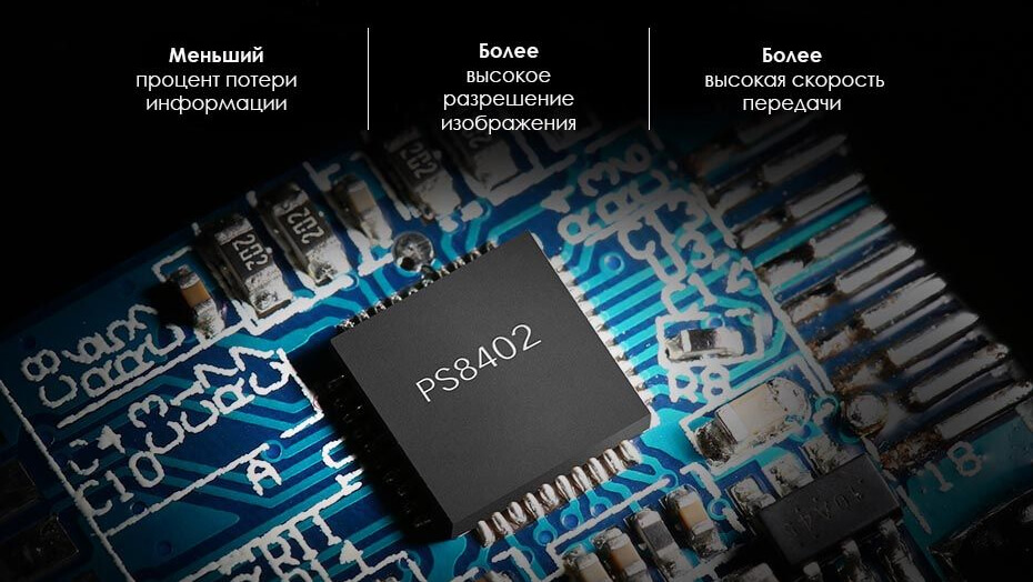 Передаёт аудио и видео одновременно. PS8402 чип поддерживает разрешение до 1080Р, TrueHD/DTSHD аудио формат.
