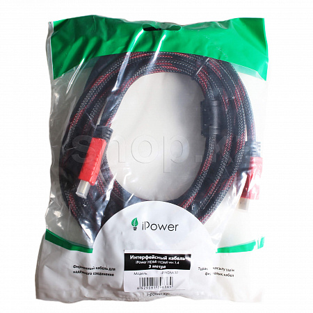 Интерфейсный кабель HDMI служит для передачи цифровых видеоданных высокого разрешения и многоканальные цифровые аудиосигналы. HDMI кабель iPower имеет высококачественную нейлоновую оплётку кабеля и позолоченный штекер для предотвращения окисления, что обеспечивает дополнительную прочность и долговечность.