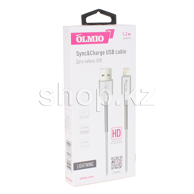 Кабель интерфейсный для Apple Lightning OLMIO HD, 1.2m, White