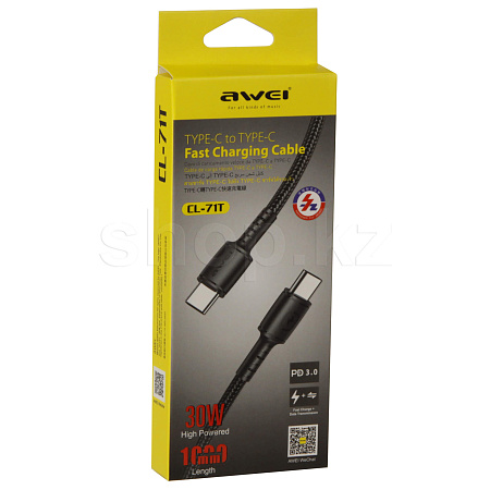 Интерфейсный кабель Awei Type-C to Type-C чёрного цвета, прочная оплётка не позволяет загнуть кабель, увеличивая срок службы кабеля, идеально подойдёт для ежедневного использования, бесперебойная и безопасная зарядка устройства в купе с высокоскоростной передачей файлов, а также быстрая синхронизация.
