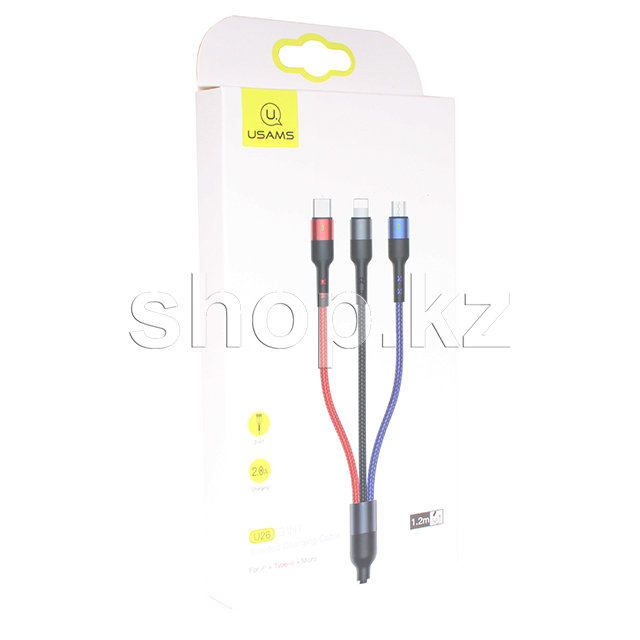 Кабель интерфейсный для USB Type-C/Lightning/Micro USB Usams SJ-316, 1.2m, Black