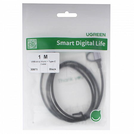 UGREEN кабель с двойным штекером USB-C и Micro USB