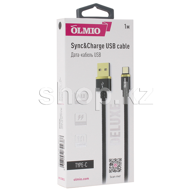 USB Type-C OLMIO Deluxe, 1m, Black интерфейс кабелі