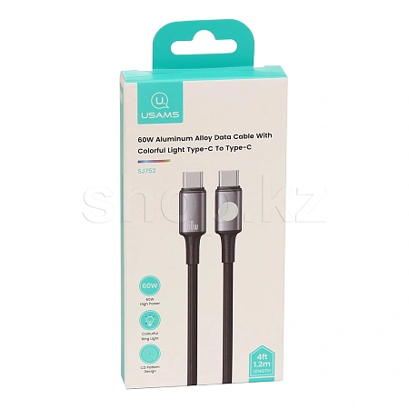 USB Type-C - Type-C Usams SJ-752, 1.2m, Dark Grey интерфейс кабелі