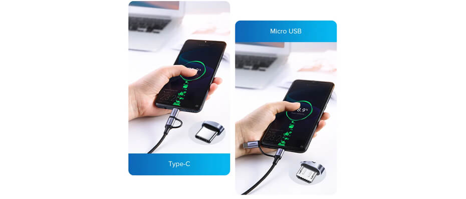 Высококачественный двойной кабель USB-C и Micro USB UGREEN позволит вам быстро передавать данные и одинаково быстро заряжать мобильные устройства. Изготовлен из качественных материалов, он не подведет вас в любой ситуации.