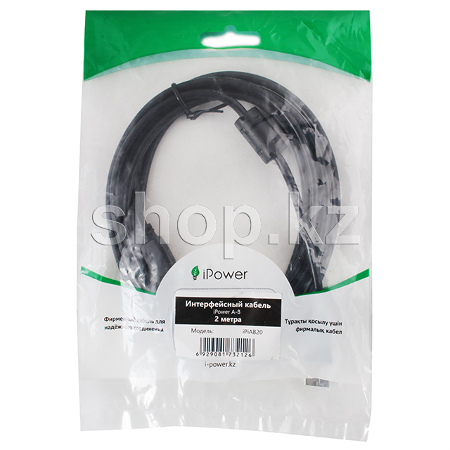Кабель USB 2.0 Type A-B iPower iPiAB20, 2m m-m, OEM