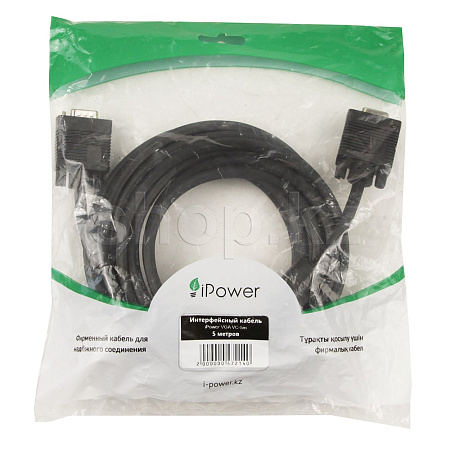 Кабель VGA 15M/15M, экранированный, iPower, 5m, OEM