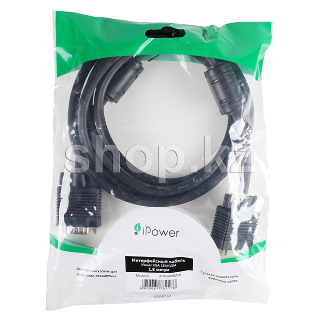 Кабель VGA 15M/15M, экранированный, iPower iPiVGAMM18, 1.8m, OEM