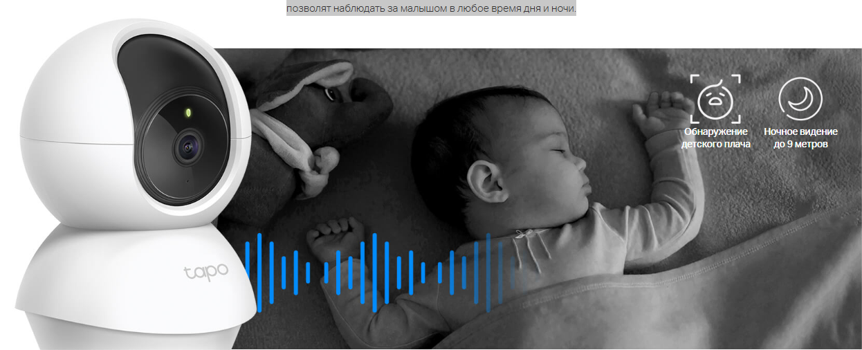 Продвинутое ночное видение и обнаружение детского плача позволят наблюдать за малышом в любое время дня и ночи.