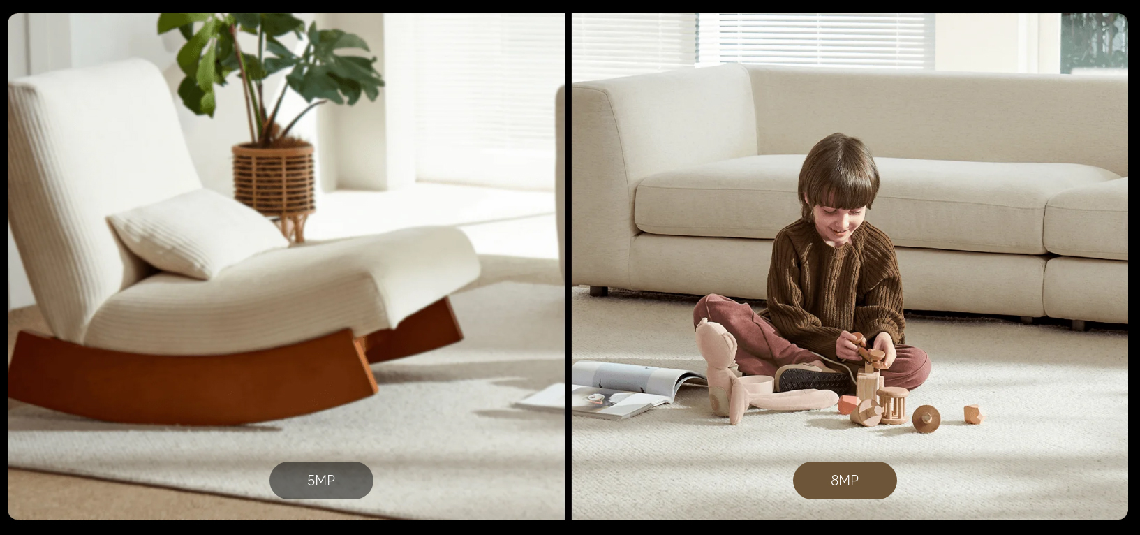 Благодаря профессиональному сенсору на 8 Мп камера обеспечивает изображения в формате 4K сверхвысокого разрешения с кристально чистой четкостью и предельной детализацией.