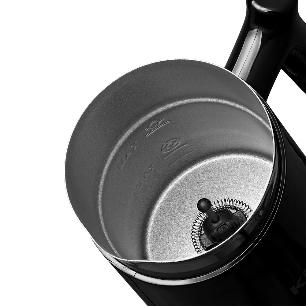 Прибор работает в четырёх режимах: лёгкая и густая пенка, смешивание с нагревом и взбивание без нагрева. Антипригарное покрытие, насадка в комплекте