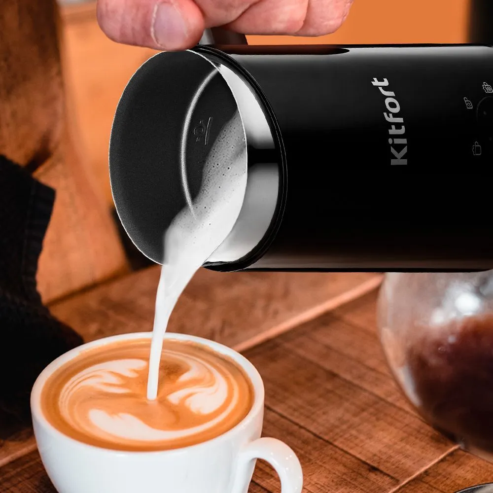 Капучинатор Kitfort КТ-780 – это устройство для приготовления молочной пенки, используемой для напитков на базе эспрессо: капучино, латте и латте макиато.