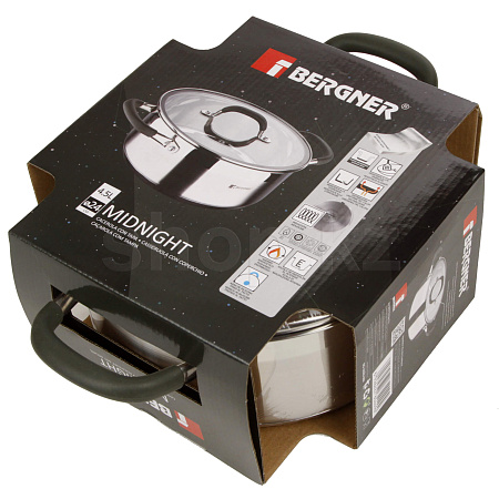 Кастрюля Bergner Midnight BG-32083-ММ изготовлена из высокопрочной нержавеющей стали устойчивой к царапинам. Не нагревающиеся силиконовые ручки. Прозрачная стеклянная крышка с паровым отверстием в комплекте. Подходит для всех типов плит размером 24 х 10.5 см и объёмом 4.5 литров.