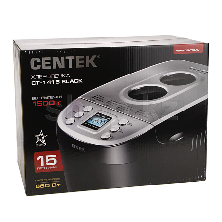 Хлебопечка Centek CT-1415 – это полезный кухонный прибор, который поможет приготовить выпечку, йогурты и джемы. Хлебопечка поддержит температуру готовой выпечки в течение часа, а с помощью программируемого таймера вы сможете отложить старт ее работы до 15 часов. Компактный прибор с теплоизолированным корпусом и смотровым окном на крышке обладает всем необходимым функционалом. Имеет 19 автоматическими программами, включая функции джем, кекс, йогурт. Масса выпечки: 500, 750 г.