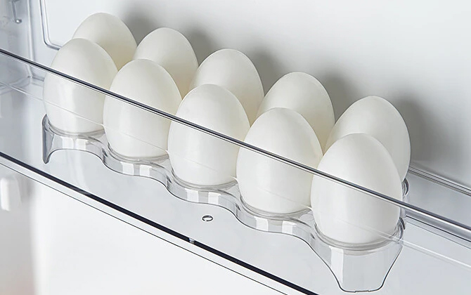 10 жұмыртқаға арналған лайнерді есіктегі контейнерге де, бөлімнің сөресіне де орнатуға болады.