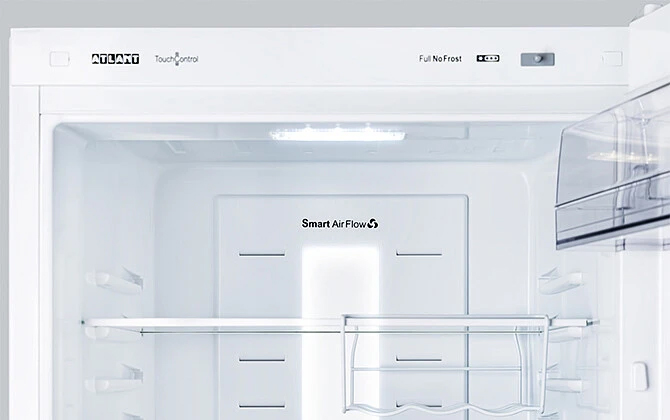 Full No Frost позволяет минимизировать уход за холодильником, сокращая необходимость процедуры размораживания до нескольких раз в год. Технология Smart Air Flow равномерно распределяет воздушные потоки, обеспечивая однородное охлаждение на всех уровнях холодильного отделения.