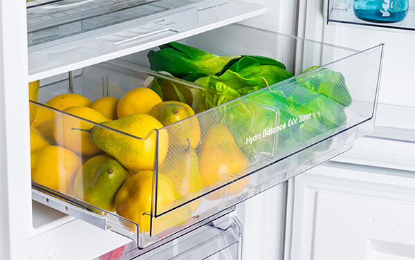 В сосуде Hydro Balance Zone с регулируемым уровнем влажности и с возможностью герметичного хранения, овощи, фрукты и зелень сохраняют свой вкус и сочность намного дольше.