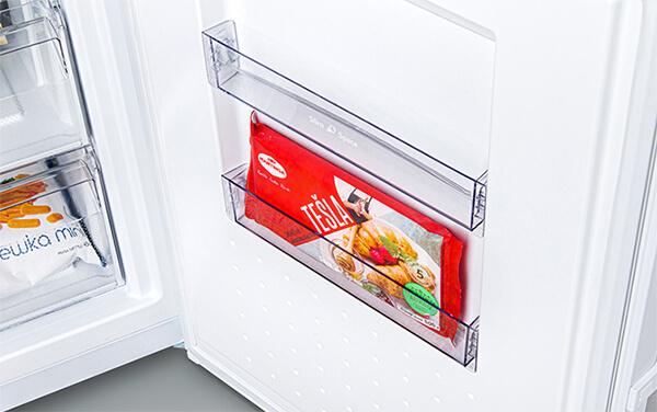 В емкостях Slim Space хранят крабовые палочки, сосиски, мороженое. Если снять одну из емкостей, то в другой можно разместить упаковку побольше.