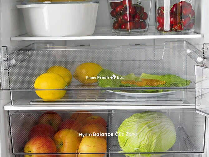В сосуде Hydro Balance Zone с регулируемым уровнем влажности и с возможностью герметичного хранения, овощи, фрукты и зелень сохраняют свой вкус и сочность намного дольше.