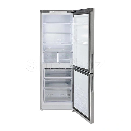 Холодильник Бирюса M6133 выполнен в сером корпусе. Модель оснащена двумя камерами общим объемом 310 литров. Основной отсек комплектуется четырьмя стеклянными полками, которые можно переставлять по высоте.