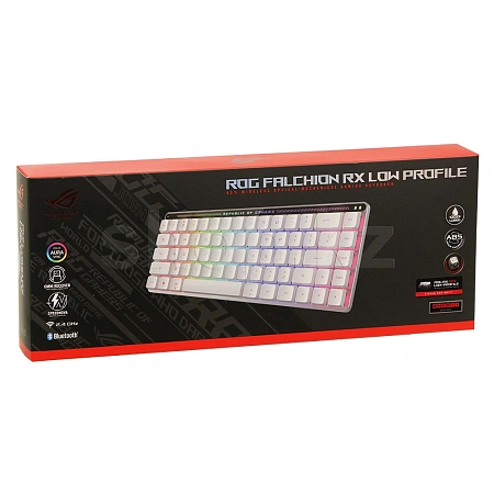 ROG Falchion RX Low Profile 65% компактная беспроводная игровая клавиатура с низкопрофильными оптическими переключателями ROG RX, трехрежимным подключением с беспроводной технологией ROG SpeedNova и приемником Omni, защитным чехлом, встроенной силиконовой амортизирующей пеной, интерактивной сенсорной панелью и поддержкой MacOS