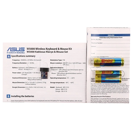 ASUS W5000 – это комплект из клавиатуры и мыши, которые избавят вас от надоедливых кабелей, ведь они подключаются к компьютеру по беспроводному интерфейсу. Клавиатура выполнена в изящном корпусе толщиной всего 11 мм, а купольная конструкция клавиш с резинопластиковыми толкателями обеспечивает низкий уровень шума.