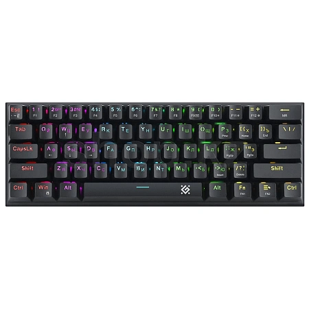 Defender Cairon GK-081 - ультракомпактная механическая клавиатура на линейных красных свитчах. Клавиатура имеет влагоустойчивую конструкцию, регулируемую радужную подсветку. Благодаря технологии Hot Swap свитчи могут быть заменены на другой тип свитчей бренда OUTEMU.