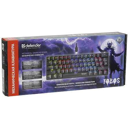 Нажмите и удерживайте в течение 3 секунд FN + Q ( для первого устройства); FN + W ( для второго устройства); FN + E ( для третьего устройства); FN + R ( для четвертого устройства); FN + T ( для пятого устройства), после чего найдите в списке доступных устройств "Fobos GK-011" для соединения. После соединения, для переключения между устройствами используйте быстрое нажатие тех же сочетаний клавиш