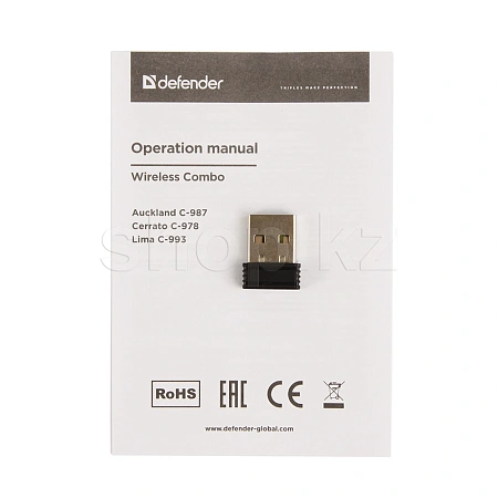 Стильный беспроводной офисный набор. В набор входит полноразмерная клавиатура с плоскими кнопками и мышь с симметричной формой, удобной для работы любой рукой. Комплект работает от одного приемника.