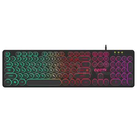 Полноразмерная игровая клавиатура с классической раскладкой. Главное достоинство модели - необычный округлый дизайн кнопок, а также радужная подсветка с возможностью регулировки яркости.