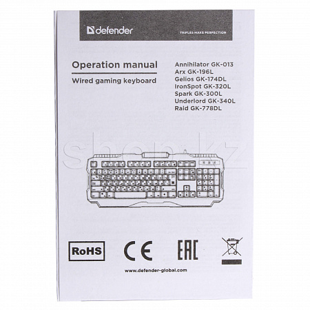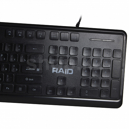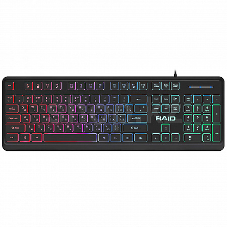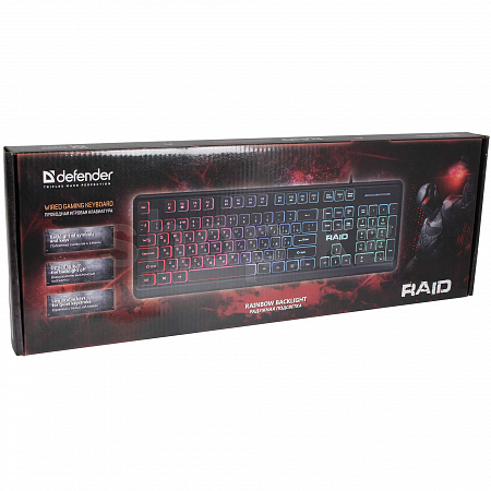 Defender Raid GK-778DL - игровая клавиатура с удобными плоскими клавишами с тихим и коротким ходом нажатия. Специальная комбинация клавиш позволяет полностью отключить подсветку.