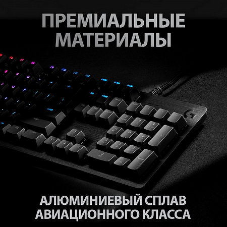 Клавиатура G513 отличается превосходными характеристиками. Кроме того, она доступна в исполнениях с различными типами механических переключателей — Romer-G (линейными либо с тактильным откликом) и GX Blue. Благодаря этому, а также высококачественному алюминиевому корпусу и съемному упору для ладоней, который содержит мягкий наполнитель с эффектом памяти, клавиатура G513 является наиболее функциональной и, без преувеличения, лучшей в своем классе.