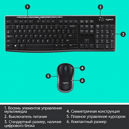 Компактный комплект клавиатуры с мышью, сочетающий удобство беспроводной технологии с надежностью на уровне проводного соединения.