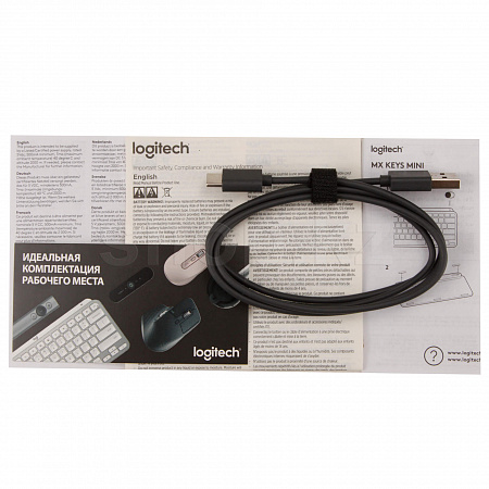 Клавиатура MX Keys Mini работает до 10 дней при полном заряде или до 5 месяцев с выключенной подсветкой3Время автономной работы зависит от режима эксплуатации и конфигурации компьютера. Для зарядки устройства используйте кабель USB-C.