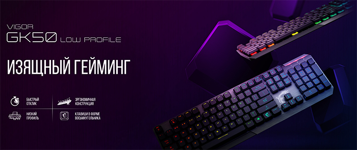 Игровая клавиатура VIGOR GK50 LOW PROFILE выполнена в стильно выглядящем тонком и легком корпусе.