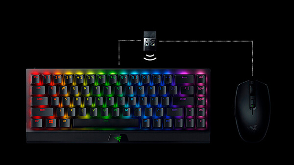 Поддержка нескольких устройств Razer HyperSpeed Оптимизируйте свой сетап и освободите порт USB, подключив беспроводную мышь и клавиатуру через один адаптер - функцию, которую можно активировать в нашей последней линейке беспроводных устройств с поддержкой Razer HyperSpeed.