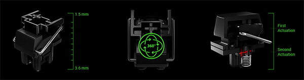 Эти переключатели могут быть адаптированы к вашему стилю игры: от легкой и чувствительной высоты срабатывания 1,5 мм для динамичных игр, до полного хода срабатывания 3,6 мм для более глубоких и осознанных нажатий клавиш.