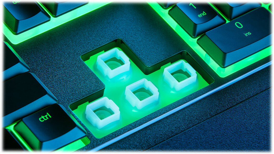 Благодаря 16.8 млн цветовых оттенков и целому набору эффектов вы можете настроить клавиатуру в соответствии со своими предпочтениями и получить доступ к динамическим эффектам подсветки для сотен игр с поддержкой Chroma.