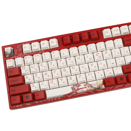 Клавиши изготовлены из высокопрочного PBT-пластика с применением dye-sublimation технологии с выгравированными символами по бокам. Использование dye-sub позволяет символам никогда не стираться и никак не ощущаться при печати, а качественный PBT-пластик гарантирует надежность и долговечность.