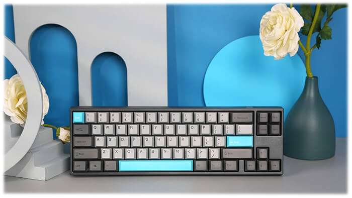Клавиатура Varmilo Moonlight имеет не только оригинальный дизайн: колпачки изготовлены из высокопрочного пластика PBT с применением dye-sublimation технологии с выгравированными символами на боках, использование dye-sub позволяет символам никогда не стереться и никак не чувствоваться при печати, а качественный PBT пластик гарантирует надежность и долговечность, клавиши имеют слегка текстурированный верх и приятны на ощупь.