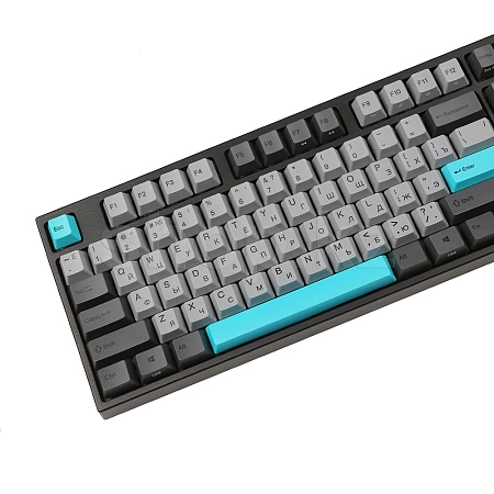 Клавиатура Varmilo Moonlight имеет не только оригинальный дизайн: колпачки изготовлены из высокопрочного пластика PBT с применением dye-sublimation технологии с выгравированными символами на боках, использование dye-sub позволяет символам никогда не стереться и никак не чувствоваться при печати, а качественный PBT пластик гарантирует надежность и долговечность, клавиши имеют слегка текстурированный верх и приятны на ощупь.